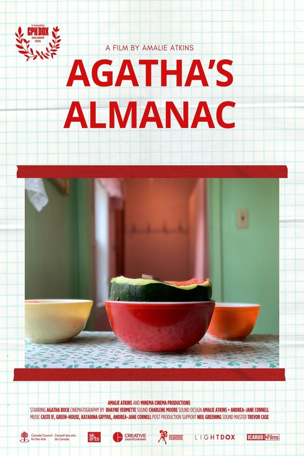 Fiercely independent 90-year-old Agatha Bock lives alone on her ancestral farm. Despite health challenges, she resolutely tends to her land, cultivating heirloom seeds passed down through generations. Employing antiquated techniques, Agatha plants and harvests her expansive field of watermelons, beans, flowers, herbs, and vegetables entirely by hand. Without a car, cell phone, running water, or even a functioning landline, Agatha's meditative processes and daily rituals form a vivid counterpoint to the rapid pace of contemporary life.Shot by an all-female crew, including director Amalie Atkins and cinematographer Rhayne Vermette, over six years on 16mm film, using a windup Bolex and an ArriSR2 studio camera, the project captures the handmade materiality of film and Agatha's tactile world. Her century-old farmhouse, with its grey exterior, contrasts with the bursts of vibrant color and texture inside. Unchanged since the 1950s, her home serves as a living archive of a vanishing era, rooted in her esoteric practices that predate modern conveniences.AGATHA'S ALMANAC offers a window into the experiences of a nearly lost generation, whose values and ways of living are at risk of fading as the world rapidly changes.
