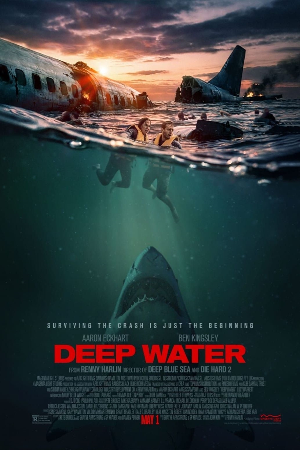 A group of international passengers en route from Los Angeles to Shanghai are forced to make an emergency landing in shark-infested waters. Now they must work together in hopes to overcome the frenzy of sharks drawn to the wreckage.