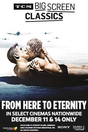 Fathom Events, Turner Classic Movies and Sony Pictures Entertainment bring the compelling war-time drama From Here to Eternity (1953) back to the big screen for a special two-day event, December 11 and 14. This beloved classic will be accompanied by special commentary from TCM hosts Robert Osborne or Ben Mankiewicz, who will provide insight, background and more, making this film come alive. The powerful, realistic story and fierce indictment of the lives of American military men (and their women) stationed in peacetime Hawaii in the summer and fall before the surprise attack on Pearl Harbor. Starring Burt Lancaster, Montgomery Clift, Deborah Kerr, Donna Reed and Frank Sinatra, directed by Fred Zinnemann and screenplay by Daniel Taradash.