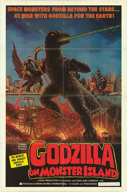 One of the cheapest entries in Toho's Godzilla franchise, this alternately noisy and talky entry finds yet another batch of goofy-looking insectoid aliens plotting to conquer humanity -- from their headquarters deep within a Godzilla theme park! -- using the double-team monster threat of Gigan (a metallic bird-creature with a handy table saw in his belly) and the three-headed Ghidorah. It is somehow apropos to the movie's comic-book premise that the nominal human hero is a washed-up cartoonist, who teams up with his equally-ineffectual pals (not counting his butt-kicking girlfriend). Eventually it is left to the Big G to square off against the extraterrestrial foes, with the occasional (but mainly inadequate) aid of Angilus for some tag-team wrestling action (which ranks among the silliest in Toho history). The paltry budget is also quite apparent this time out, as indicated by frequent use of recycled footage from previous monster films, particularly Destroy All Monsters. The film's only real highlight comes in the form of a plot twist which grants Godzilla his first speaking role.~ Cavett Binion, All Movie Guide