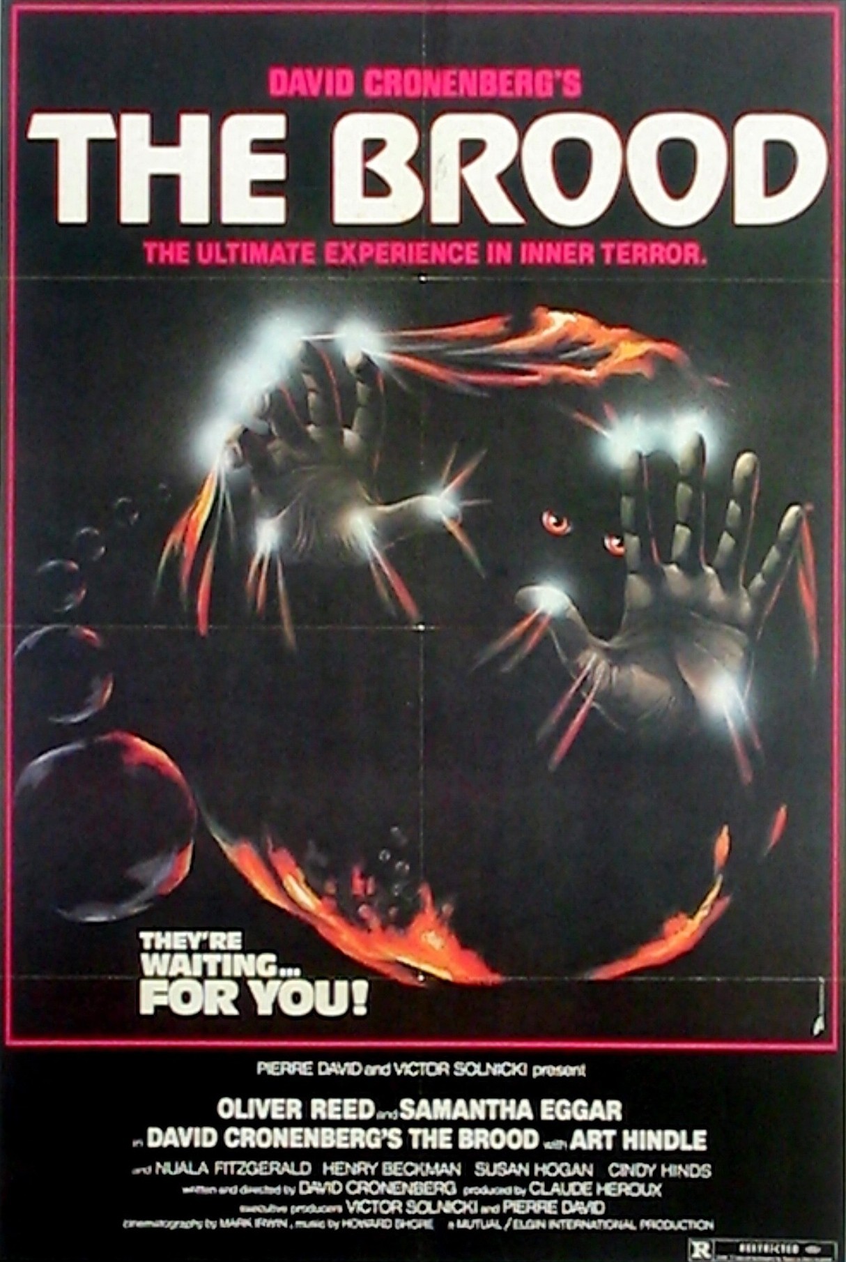 Canadian director David Cronenberg followed his graphic vampire variation Rabid with this multi-layered, speculative horror film which addresses the way the repressed demons of the psyche can force their way to the surface. Psychologist Dr. Raglan (Oliver Reed), director of the controversial Psychoplasmic Institute and author of the book The Shape of Rage, encourages his patients to outwardly manifest their anger and fear (aided by some experimental drugs), which then takes physical shape as actual sores, cancers, or strange new organs. One of Raglan's more successful patients (from his point-of-view, anyway) is Nola Carveth (Samantha Eggar), who is undergoing therapy following a painful divorce from her husband, Frank (Art Hindle). When Frank discovers evidence that Nola may have injured their daughter, Candice (Cindy Hinds), he begins to suspect Raglan's techniques but is unprepared for the most horrifying by-product of her rage: a progeny of sexless, dwarflike mutants who are born for the sole purpose of acting out her violent fantasies of revenge. Containing only enough energy to carry out their murderous tasks, the brood is dispatched to kill Nola's parents, then a woman she believes is having an affair with Frank. By the time Frank discovers the origins of the tiny offspring, they have already abducted Candice and taken her to the institute, where Frank must confront Nola in person. Although it contains one of the most visceral and nauseating scenes in movie history (during the film's climax), this nevertheless remains the most subtle of Cronenberg's early horror projects, with a strong subtext about the devastating effects of divorce.~ Cavett Binion, All Movie Guide