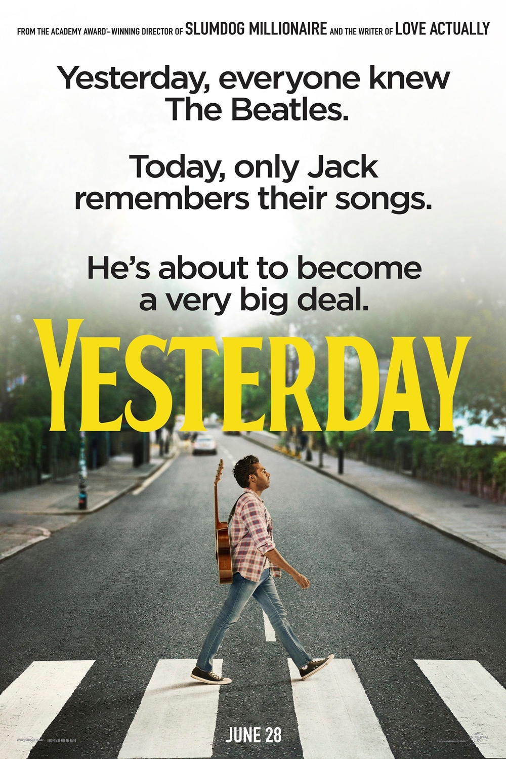 In Yesterday, Himesh Patel is Jack Malik, a struggling singer-songwriter whose dreams of fame are rapidly fading, despite the support and devotion of his childhood best friend, Ellie (Lily James). When Jack wakes up after a freak accident to discover that The Beatles have never existed ... and he finds himself with a very complicated problem, indeed.Featuring new versions of The Beatles' most beloved hits, Yesterday is written by Richard Curtis (Love Actually) and directed by Academy Award®-winner Danny Boyle (Slumdog Millionaire).